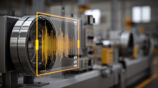 Robotic arm interacting with a digital interface displaying waveforms and graphical data points ai generated