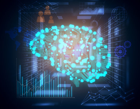 Virtual brain digital interface for data science concept