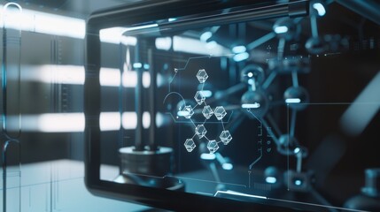 Molecular structures in motion scientific exploration laboratory environment digital art futuristic viewpoint