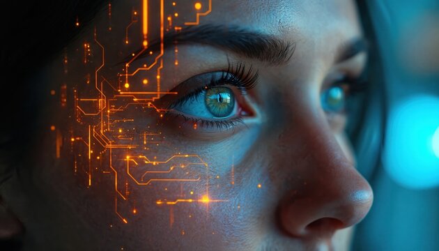Futuristic digital interface with circuit board elements
