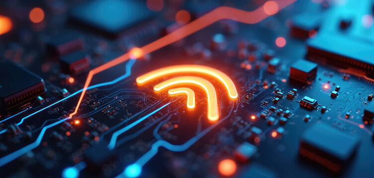 Futuristic Technology Data Visualization Interface with Glowing Blue and Orange Elements