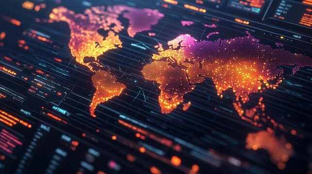Futuristic digital interface displaying global data