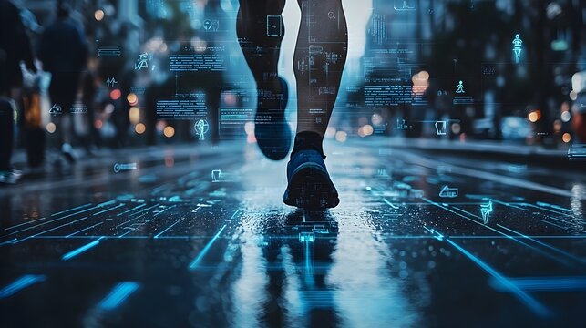Fitness Tracker Interface Overlaying Runner Visualizing Data-Driven Health and Tech in Fitness