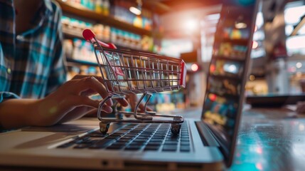 A futuristic digital interface with glowing blue panels and a blurred, high-tech cityscape background in soft focus