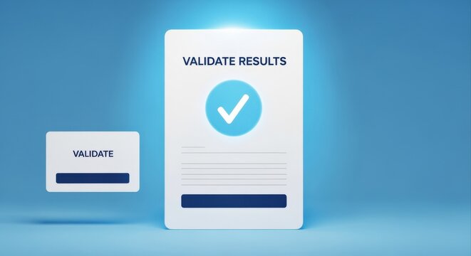 Validation Results Mockup on Blue Background, Demonstrating Success, Approval, and Completion in a Digital Interface