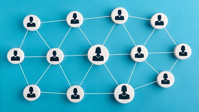 Connected Human Network Icons on Blue Background Visualizing Teamwork, Community, and Digital Social Interaction