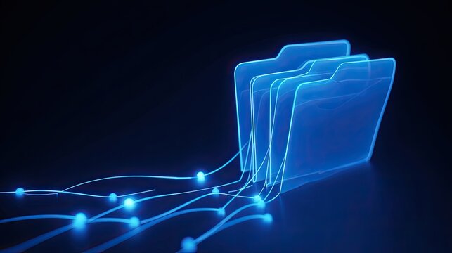 Glowing Digital Folders With Flowing Data Connections In Futuristic Conceptual Design