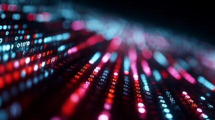 Abstract blue/red binary code streaks at an angle with bokeh