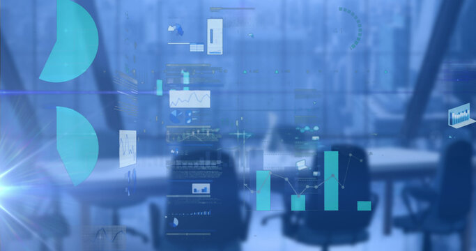 Image of blue arrows, graph with data processing and scope scanning over blue background