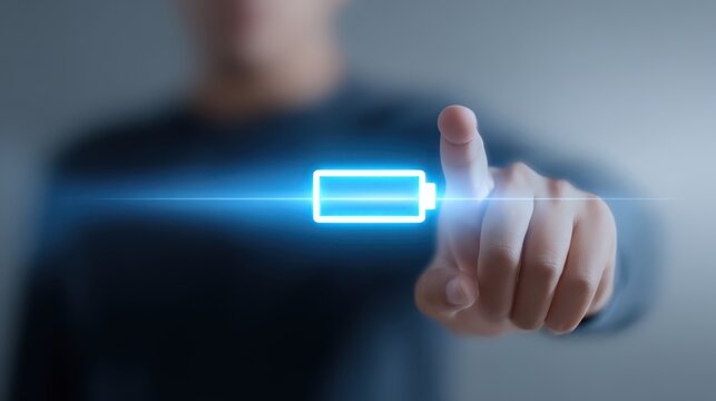 Human fingers interact with a futuristic digital interface, showcasing glowing circular elements with connecting lines and icons, set against a dark gray background, demonstrating technology and...