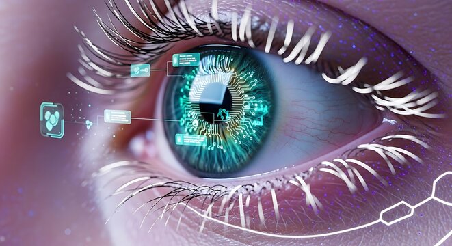 close up of futuristic eye with digital elements, symbolizing technology and innovation