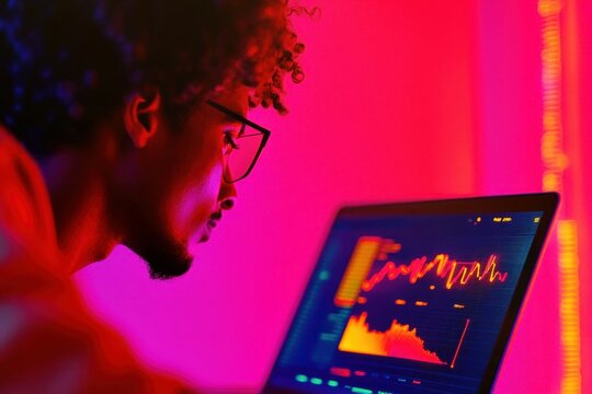 Vibrant digital interface showcasing data analytics, with colorful charts and graphs representing current trends and statistics.