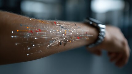 Futuristic Arm with Data Overlay.