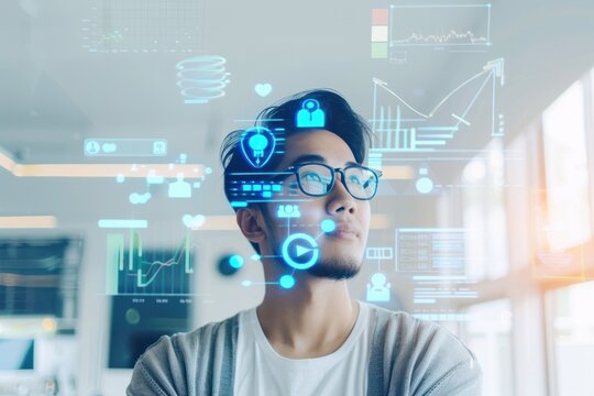 Man with futuristic holographic interface around head