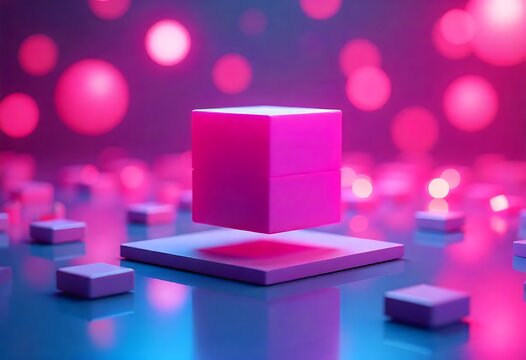 Dynamic digital landscape showcasing vibrant geometric shapes in glowing hues against a dark background representing technology and innovation