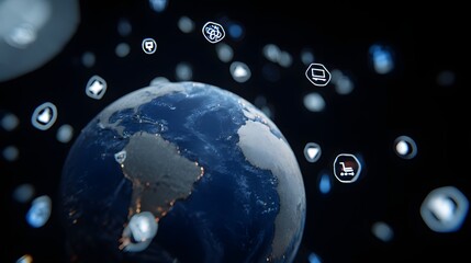 Interconnected Global Network Concept with Blue Earth Globe Surrounded by Floating Digital Connection Segments and Nodes
