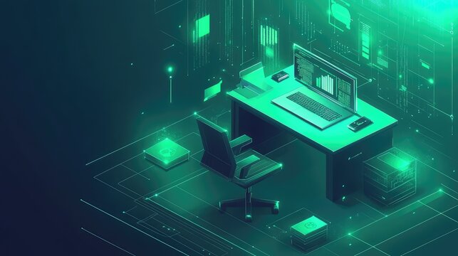 Digital office desk showing cybersecurity and data management concept