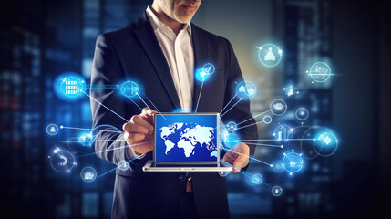 Global financial data and technological network over world map