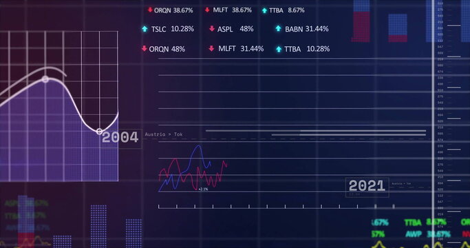 Image of financial data and graphs over grey background