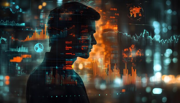 Digital Interface With Globe And Data Overlays On Black Background Images