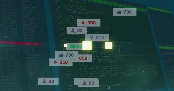 Image of digital lightbulb and media icons over scope scanning and data processing