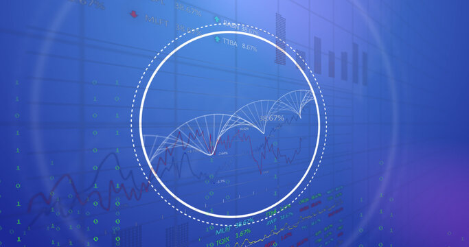 Spinning 3D globe floating in virtual cyberspace, with red-pink grid, nodes and double-helix strand
