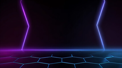 Technology background with hexagon shapes creating a modern neon glow for digital interface design, suitable for UI layout