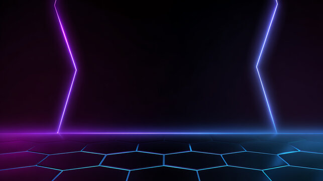 Futuristic background with neon lights and geometric patterns ideal for tech and digital content.