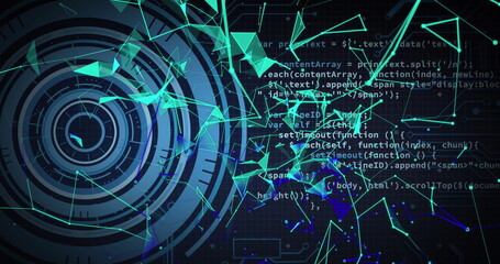 Abstract digital interface concept showcasing data processing and global connections through scope scanning technology