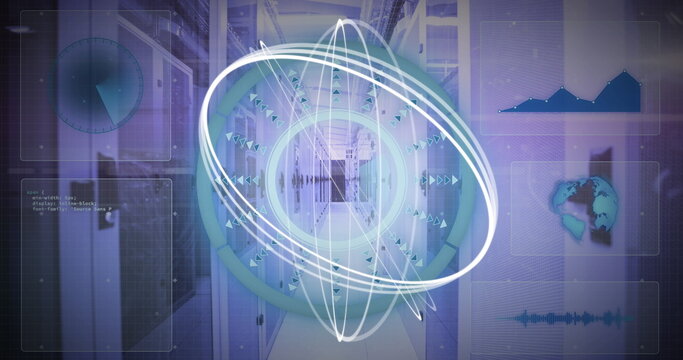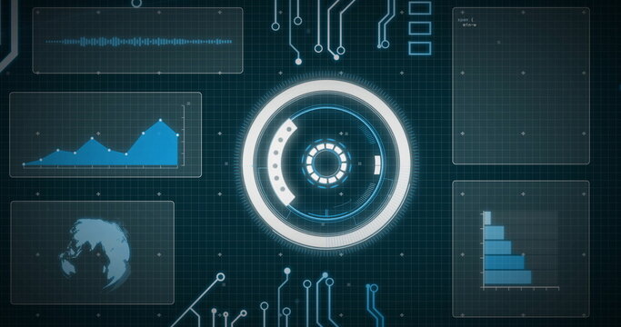 Abstract digital interface concept showcasing data processing and global connections through scope scanning technology