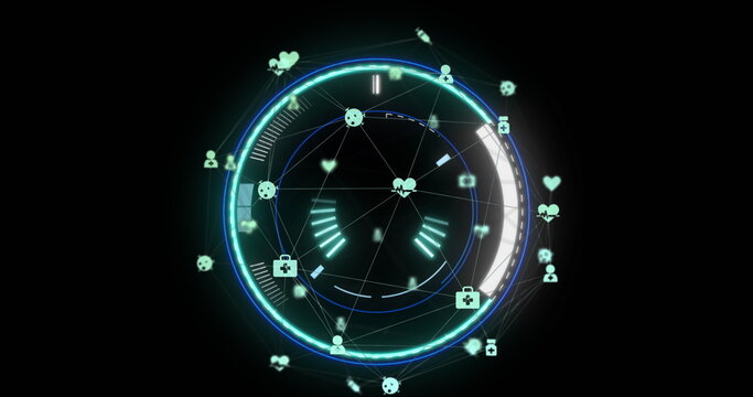 Image of data processing with scope scanning on black background