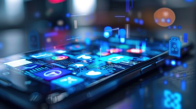 Digital Interface With Smartphone Icon And Data Streams Images