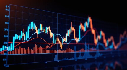 Stock Market Graph, Financial Data, Trading Chart, Blue and Red Lines, Business Analysis, Screen