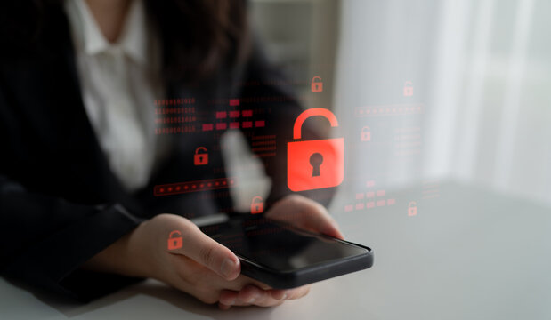 Cybersecurity warning with digital lock icon