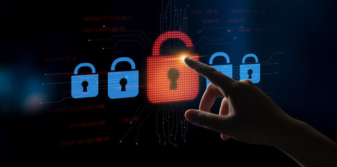 Digital interface and cyber security illustration featuring padlock icon