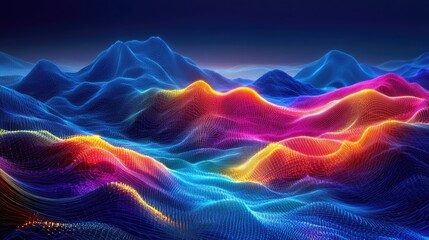 Digital mountainscape shimmers with light