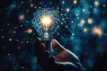 Illuminated light bulb with a glowing network of connections, symbolizing innovation, technology, and creativity in a digital age.