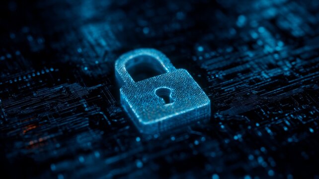Close-up of a digital lock symbol on a microchip, representing cybersecurity and data protection concepts.