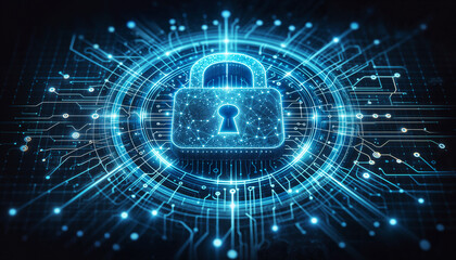 Digital lock symbol in cybersecurity illustration