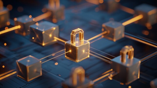 Digital padlock on blockchain network, representing secure data and cryptocurrency transactions