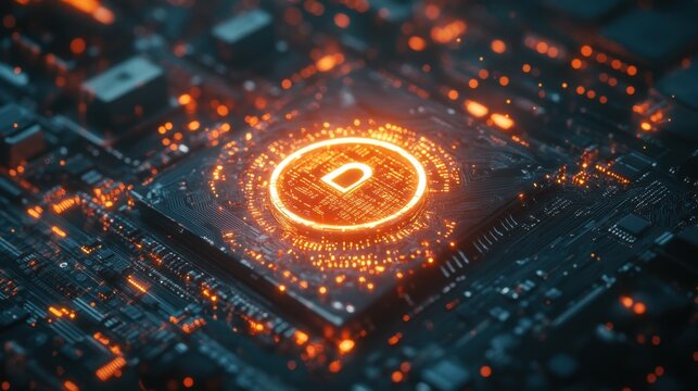 Cybersecurity digital lock glowing on a high-tech circuit board, symbolizing data protection, network security, and advanced technology concepts in modern computing