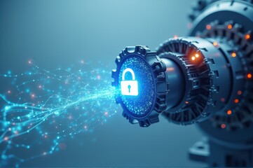 futuristic digital lock with glowing circuit lines symbolizing cybersecurity and data protection. concept of advanced technology and secure connections. web design, app interface, tech