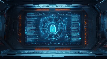 Cybersecurity lock with futuristic digital interface