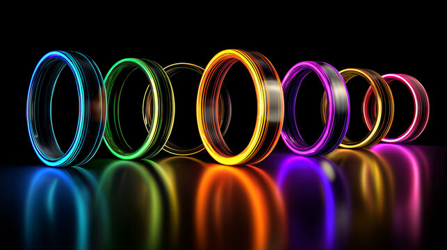 Dynamic swirling neon rings forming a futuristic abstract motion tunnel