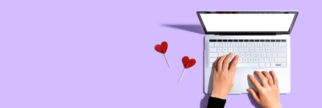 Valentine's Day app promotion. Single phone with blank screen and presents on a red stage for digital love concept.