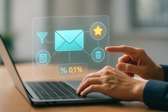 Eye-catching computer screen featuring a mail icon signifying a futuristic ai-powered email automation system
