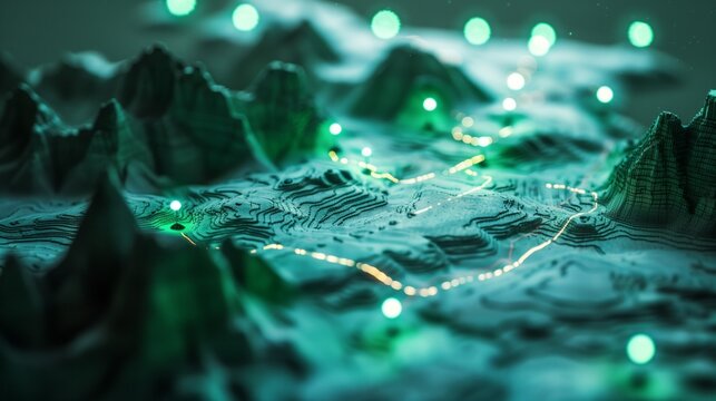 Conceptual representation showing networks with roads and natural terrain