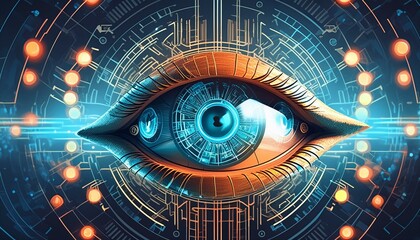 Futuristic cybernetic eye with digital interface overlay