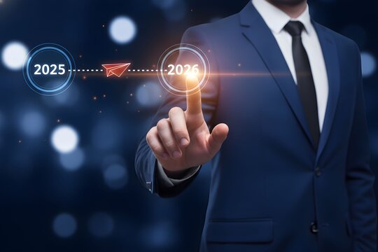 Digital business concept with businessman's finger pressing a future social network screen button for success