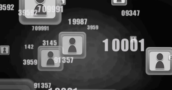 Media icons layered over complex data processing and scope scanning in modern digital design, media icons over data processing and scope scanning